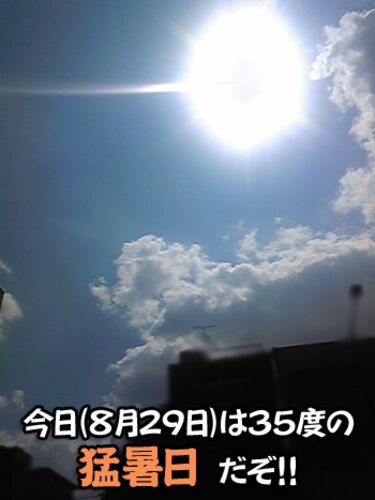 今日は学校で調理実習(クッキー作り)‥‥があったのだが、写真の編集が終わらないから、先に帰りに撮った空の写真をアップしちゃおうか!! (※調理実習の日記は明日30日以降に書く予定。) 今日は猛暑日…。 暑くて暑くてもう… 下手に外、出歩いたらあっとい…